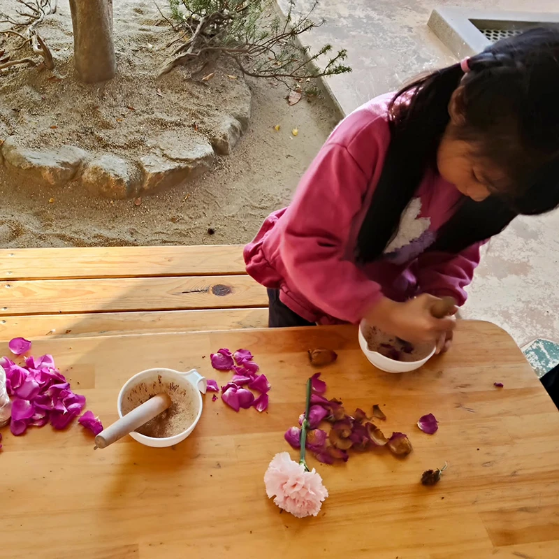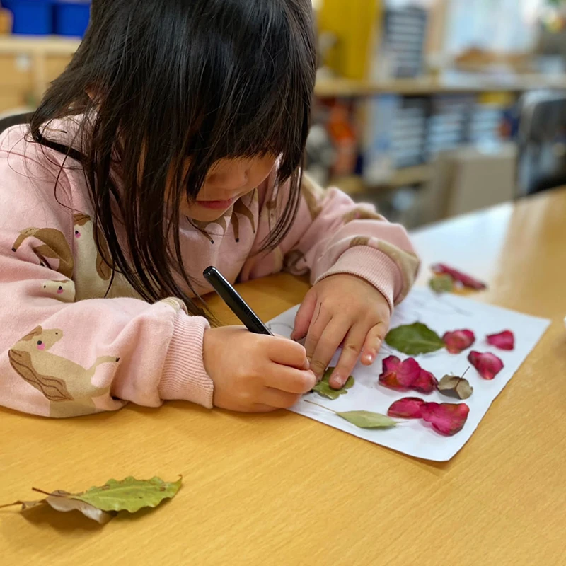 五感を刺激する自然の中での活動や、一人ひとりのやってみたいの気持ちを大切に、園庭は五感を刺激する植物、部屋には創造力を育てるおもちゃや素材が自由に使えるよう準備されています。