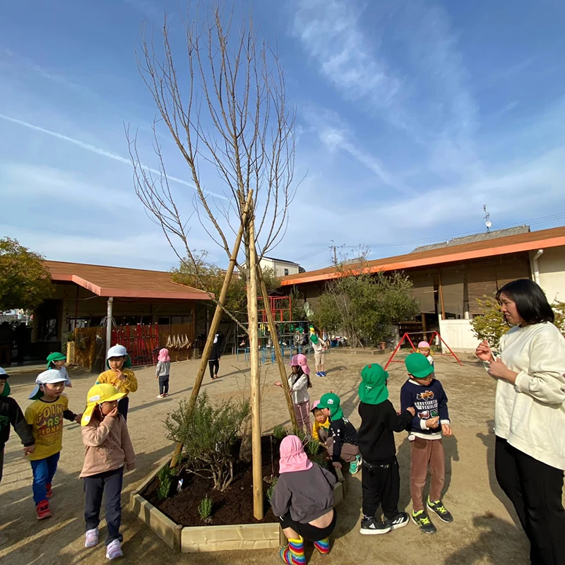 カエデの木が夏にこども達を守ってくれる木陰になってくれますように✨