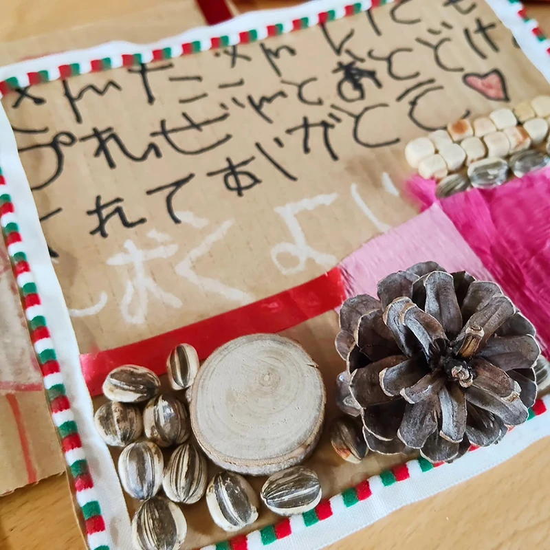 いろんなクリスマスバックやサンタさんが、かえで保育園と気づいてくれる目印、サンタさんへのプレゼント、お手紙😍