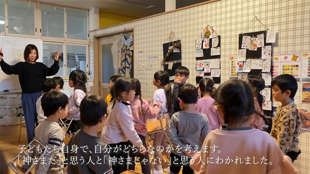 子どもたちは「神さまだと思う人」「神さまじゃないと思う人」に分かれます。